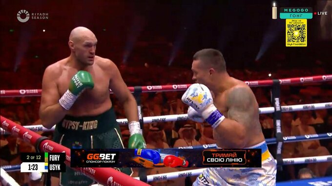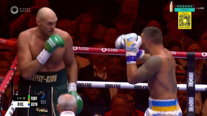 01:21. 🥊 Олександр Усик (21–0, 14 KO) – Тайсон Ф'юрі (34–0–1, 24 KO)