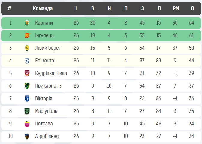 Турнірна таблиця