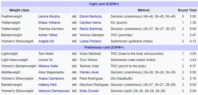 У головному бою в октагон вийшли: Едсон Барбоза (Бразилія, 24–11) та Лерон Мерфі (Англія, 13–0–1).
