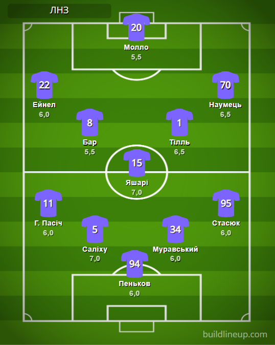 ЛНЗ: Пеньков – Г. Пасіч, Саліху, Муравський, Стасюк (Олійник, 79) – Бар (Бойко, 46), Яшарі, Тілль – Ейнел, Молло (Хобленко, 58), Наумець (Шестаков, 69).