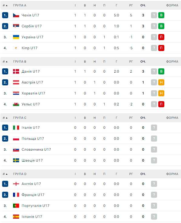 - 20:30. Кіпр U17 – Чехія U17 – 0:5