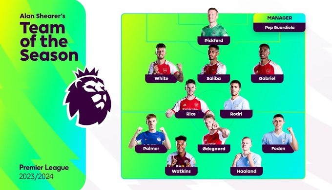 До команди Ширера увійшли Джордан Пікфорд («Евертон»), Бен Вайт, Вільям Саліба, Габріел Магальяес, Деклан Райс (усі - «Арсенал»), Родрі («Манчестер Сіті»), Коул Палмер («Челсі»), Мартін Едегор («Арсенал»), Філіп Фоден («Манчестер Сіті»), Оллі Воткінс («Астон Вілла»), Ерлінг Холанд («Манчестер Сіті»).