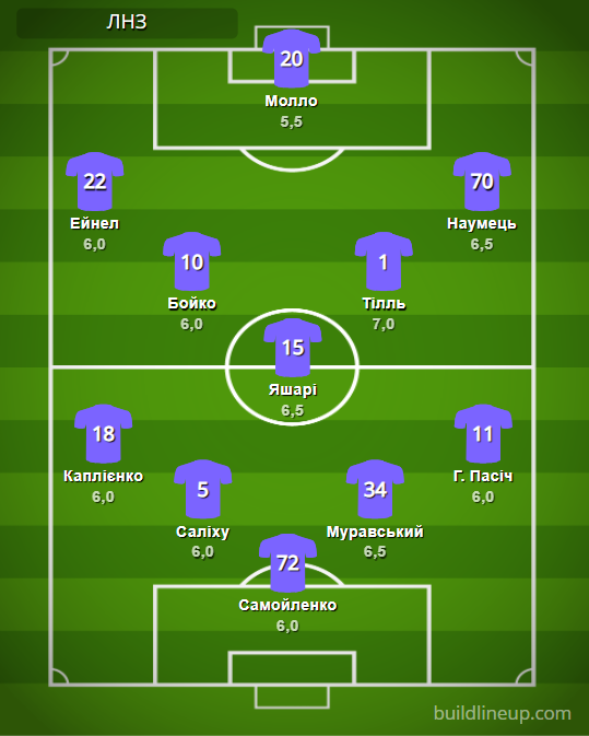 ЛНЗ: Самойленко – Каплієнко (Стасюк, 70), Саліху, Муравський, Г. Пасіч – Бойко, Яшарі, Тілль (Шестаков, 70) – Ейнел (Тищенко, 70), Молло (Прядун, 76), Наумець (Олійник, 56).