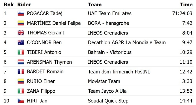 Рожеву майку лідера загального заліку зберіг словенець Тадей Погачар із команди «UAE Emirates».