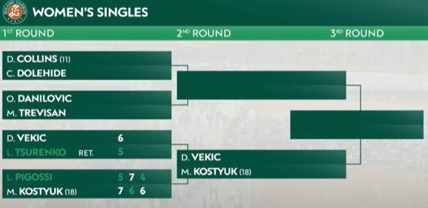 У наступному раунді Костюк зіграє з Донною Векич (№40 WTA), з матчу проти якої знялася Леся Цуренко.