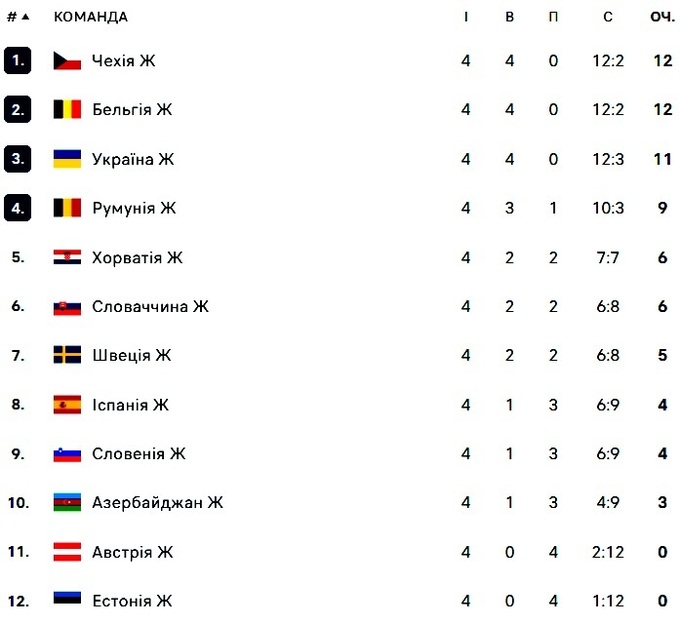 У жіночому турнірі без поразок виступають три збірні – Бельгії, Чехії та України. Але, на відміну від перших двох команд, підопічні Івана Петкова мають на одне очко менше. Проте, у всіх трьох збірних чудові шанси пробитися до фінального квартету, оскільки Україну відділяє від Хорватії, яка займає 5 місце, п'ять очок. А це означає, що лідерам достатньо виграти хоча б один з двох матчів, що залишилися, і завдання-мінімум буде вирішено. До речі, Чехія і так буде представлена у вирішальних іграх, бо буде господарем «Фіналу чотирьох».
