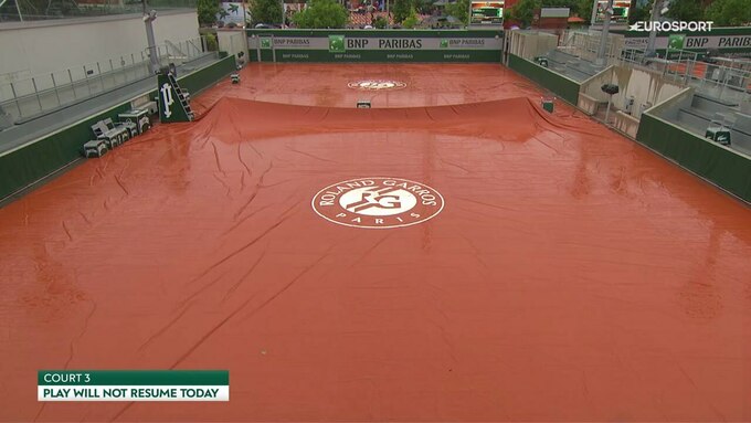 Сьогодні ігри продовжаться лише на двох кортах, на яких є дах: корт імені Філіпа Шатріє та корт імені Сюзанн Ленглен.