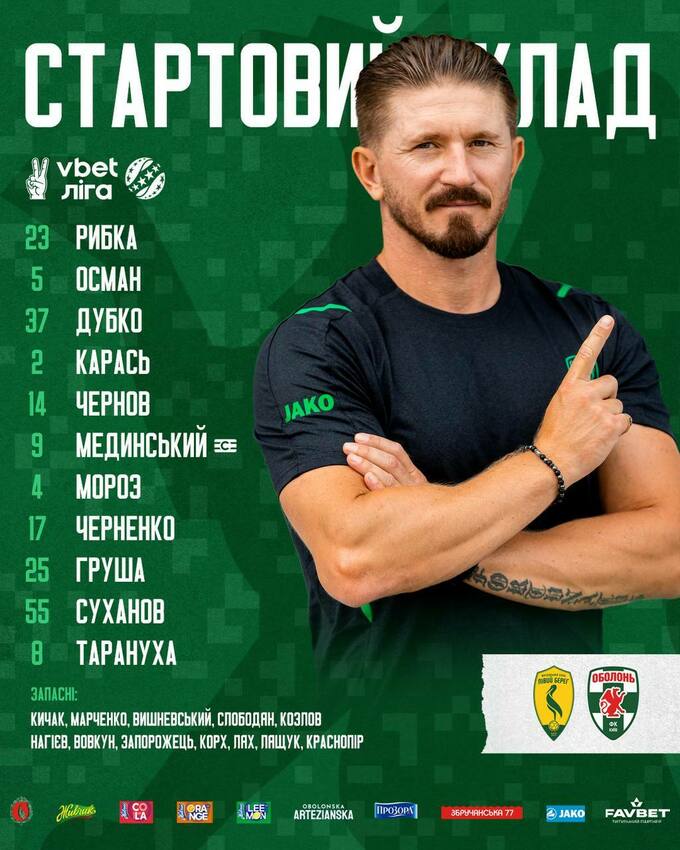 Запасні: Кичак, Марченко, Вовкун, Слободян, Вишневський, Козлов, Корх, Лях, Лящук.