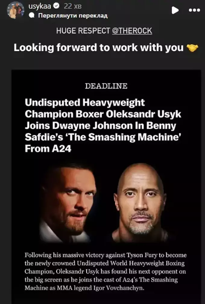 Усик підтвердив, що зніметься в одному фільмі із зіркою Голлівуду
