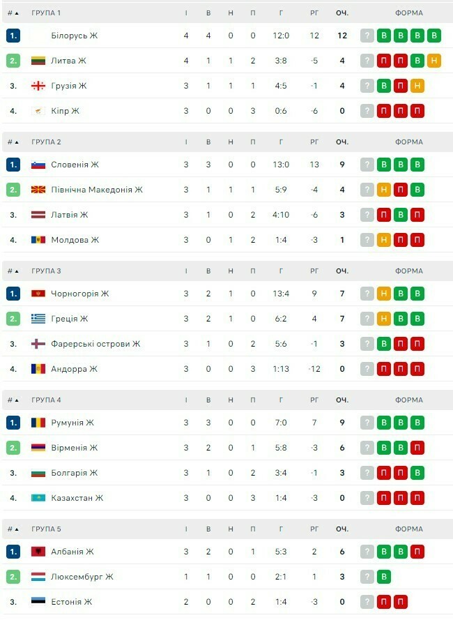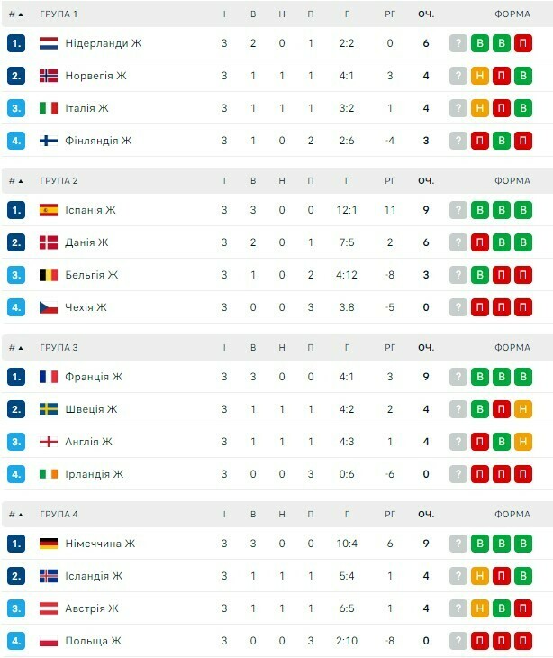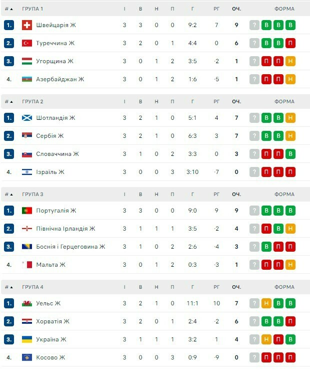 Турнірні таблиці відбору до жіночого Євро-2025. Яке місце посідає Україна?