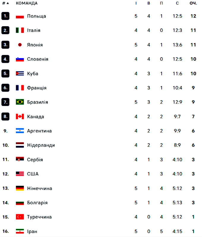 Поляки завдали поразки болгарській збірній 3:1 і знову очолили таблицю Ліги націй. Після п’яти матчів у них стало 12 очок. У третьому матчі вівторка волейболісти Японії обіграли команду Ірану 3:0. Тепер у господарів майданчика 11 очок та 4 місце.