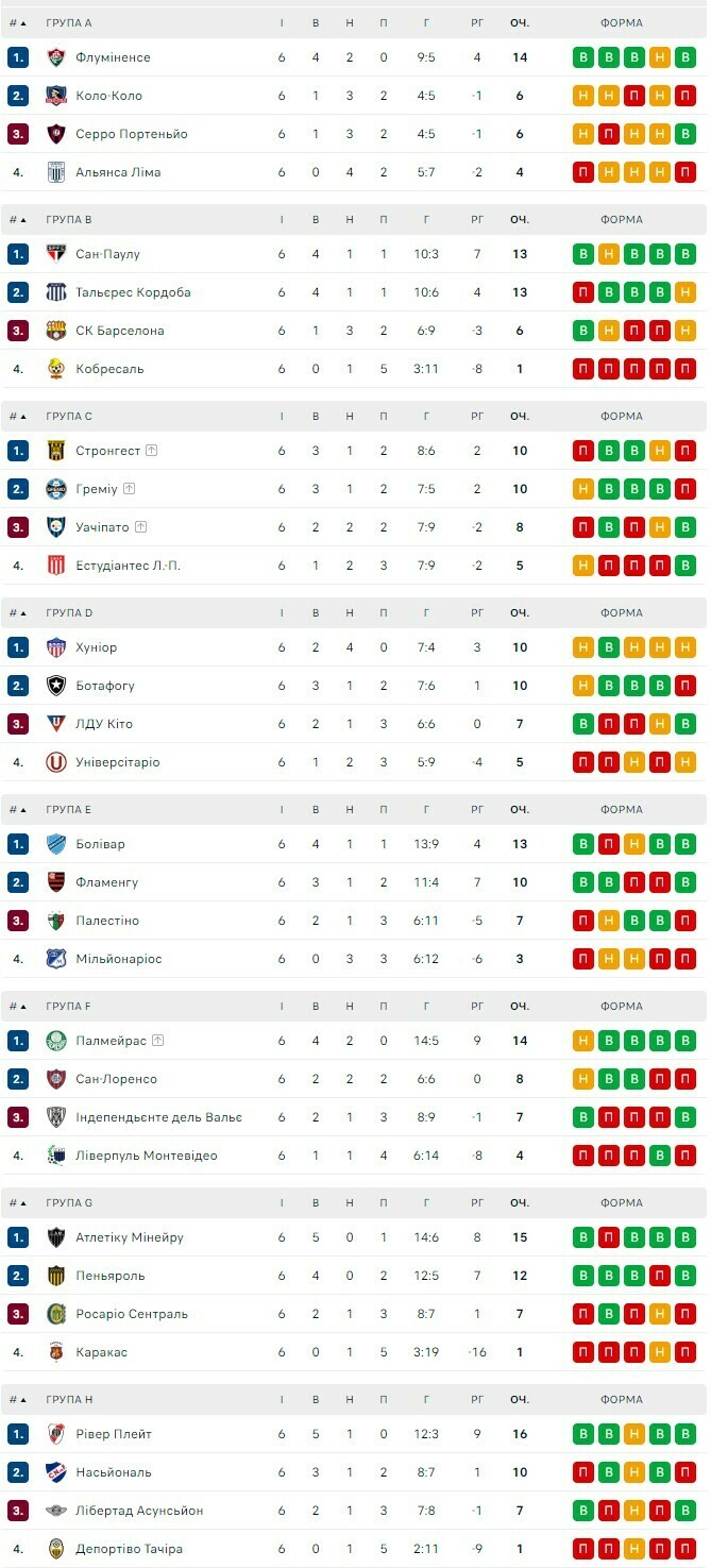 Завершено груповий етап. Визначено пари 1/8 фіналу Кубка Лібертадорес