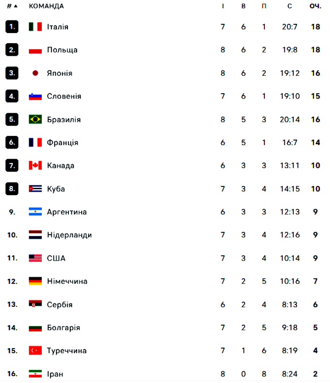 Сьогодні команда Польщі в японському місті Фукуока у своєму заключному матчі другого туру в чотирьох партіях поступилася суперникам із Бразилії. Там же у суботу своєї першої поразки в турнірі зазнала збірна Словенії. З рахунком 1:3 вона програла Японії.