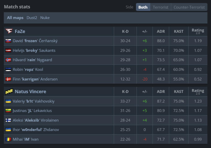 У матчі другого туру групового етапу «народжені перемагати» здолали колектив з Данії – FaZe Clan. Зустріч проходила у форматі bo3 (best of 3). NaVi виграли 2:1.