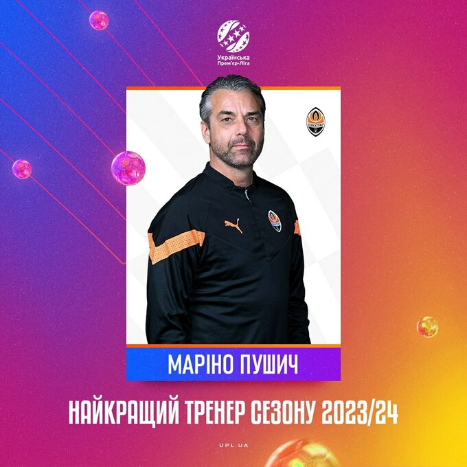 Маріно Пушич та Георгій Судаков із донецького «Шахтаря» визнані найкращим тренером та гравцем сезону Української Прем'єр-ліги 2023/24.