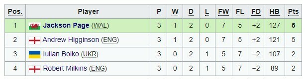 - 15:30. Джексон Пейдж – Ендрю Хіггінсон – 2:2