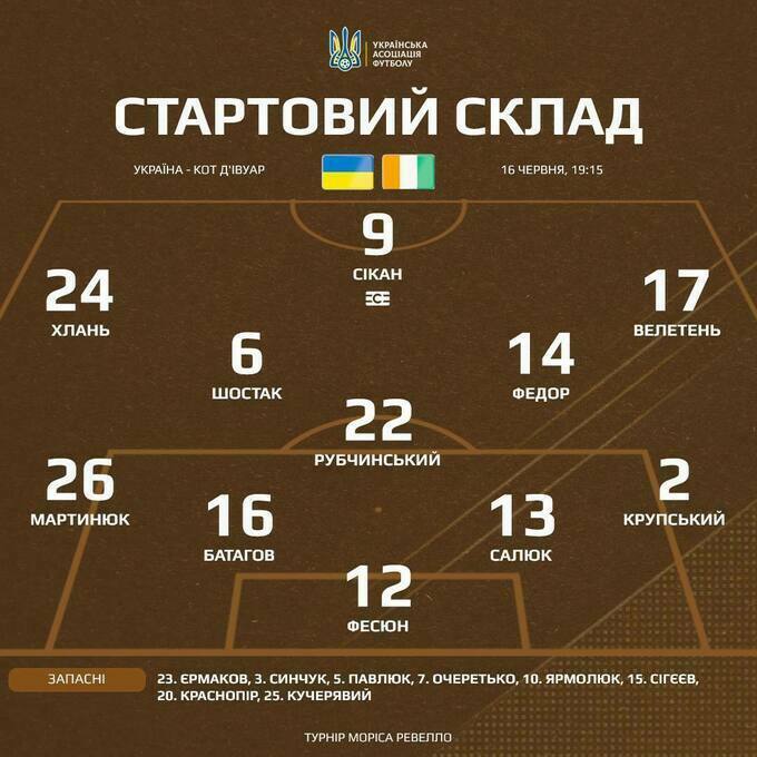 В неділю, 16 червня, відбудеться фінал товариського турніру Моріса Ревелло, в якому гратимуть збірна Кот-д'Івуару з футболу U-20 та збірна України з футболу U-23, більше відома як олімпійська збірна України. Гра пройде у Франції, початок – о 19:15 за Києвом.