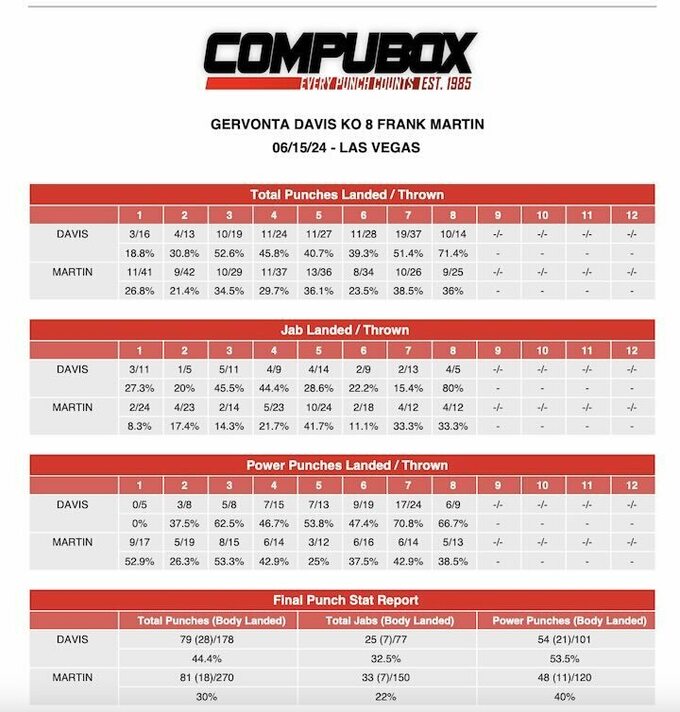 Джервонта Девіс – Френк Мартін. Статистика ударів