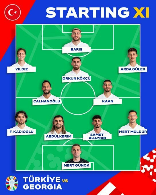 У вівторок, 18 червня, відбудеться матч 1-го туру чемпіонату Європи 2024 у групі F, у якому взаємини з'ясовуватимуть команди Туреччини та Грузії.