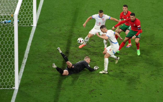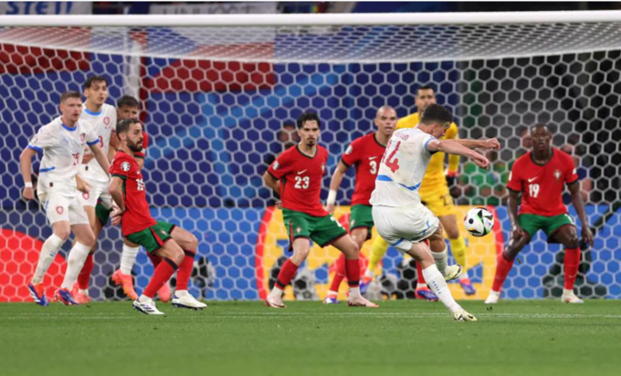 Португальці почали робити заміни, нервуватися, трохи сваритися, але дуже швидко зрівняли – Вітінья навісив, Мендеш скинув і воротар чехів Станек вирішив не фіксувати, а в падінні вибивати. Виходило на ногу Роналду, але того випередив захисник Гранач, від якого м'яч і влетів у сітку.