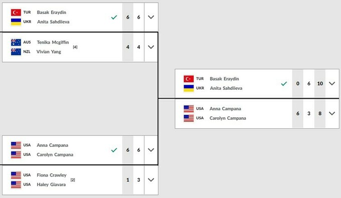 У фінальному матчі українка з напарницею обіграли американський тандем Анна Кампана та Каролін Кампана з рахунком 0:6, 6:3, [10:8].