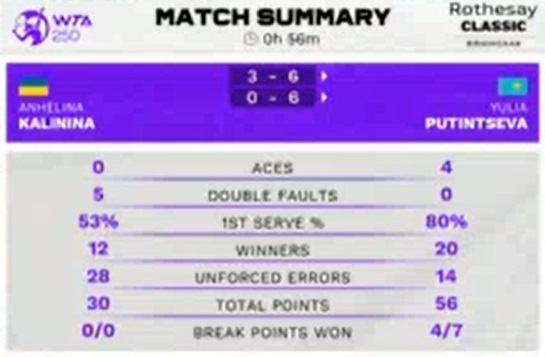 Ангеліна Калініна (Україна) – Юлія Путінцева (Казахстан) – 3:6, 0:6