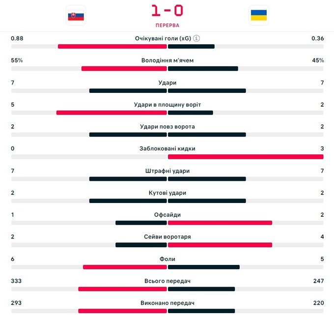 Українці організовують свої атаки з глибини, бо словаки постійно пресингують, починаючи з середини поля.
