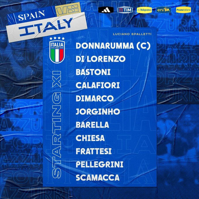 Італія: Доннарумма, Ді Лоренцо, Бастоні, Калафіорі, Дімарко, Барелла, Жоржиньо, Фраттезі, Кьєза, Пеллегріні, Скамакка.