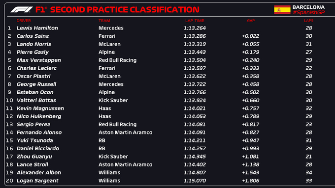У топ-3 за Хемілтоном розташувалися Карлос Сайнс і Ландо Норріс, які відстали всього на 0,022 і 0,055 секунд відповідно.