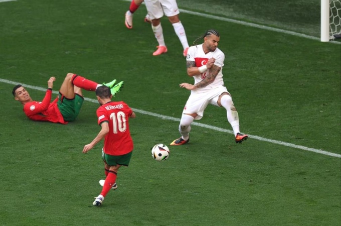 Їлмаз впав у межах штрафної площини Португалії. Арбітр показує, що все було в рамках правил.