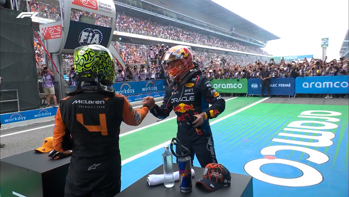 У другій частині гонки Норріс, маючи свіжіші шини, кинувся в погоню за Ферстаппеном, але, як і на трасі в Імолі, Ландо не зумів наздогнати і перегнати суперника. Британець скоротив відставання до 2,2 секунди.