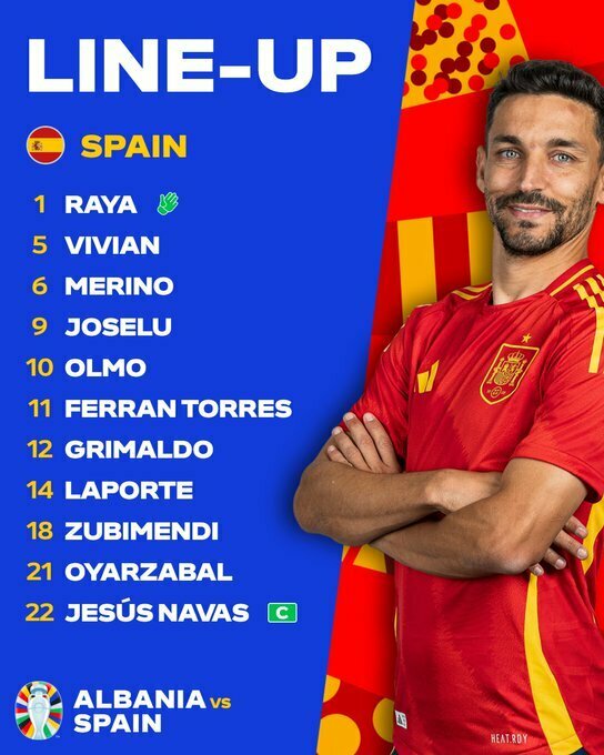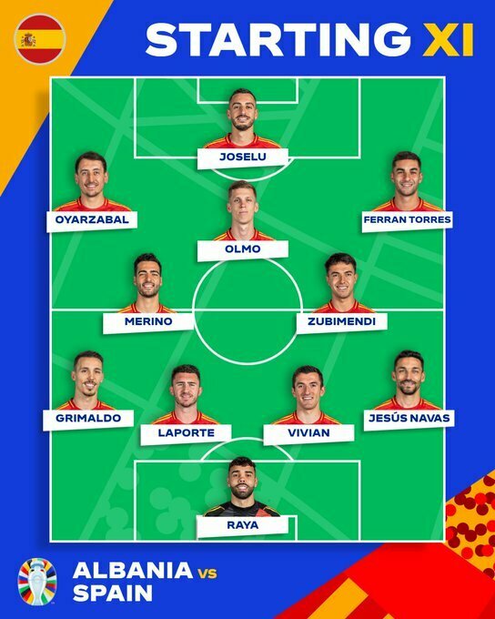 Іспанія: Рая – Грімальдо, Лапорт (Ле Норман, 46), Вівіан, Навас – Меріно, Субіменді – Оярсабаль (Фермін, 61), Ольмо (Баена, 84), Ферран Торрес (Ямал, 72) – Хоселу (Мората, 72).