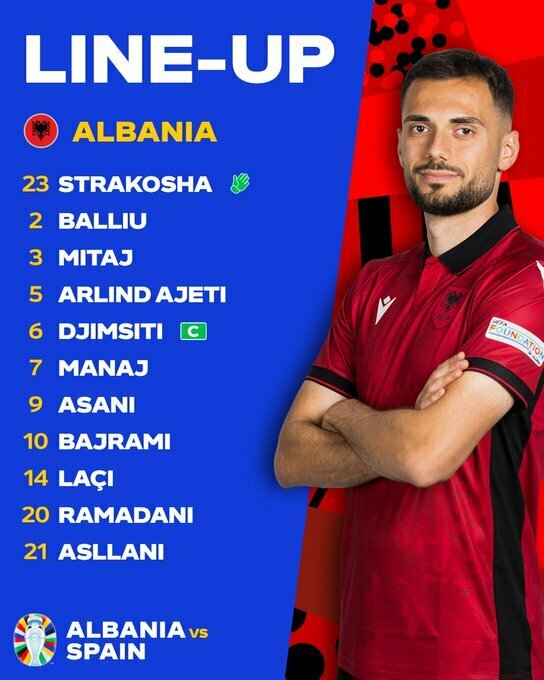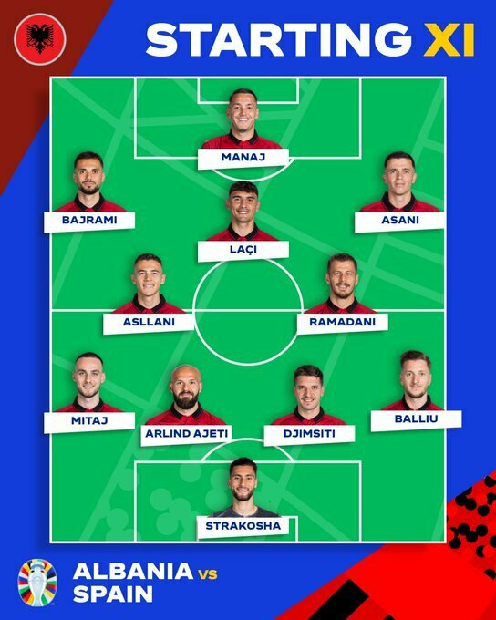 У понеділок, 24-го червня, відбудеться поєдинок 3-го туру групового етапу чемпіонату Європи-2024 у рамках групи B, у якому змагатимуться Албанія та Іспанія. Матч пройде в Дюссельдорфі (Німеччина), на полі стадіону «Меркур Шпіль-арена», початок о 22:00.