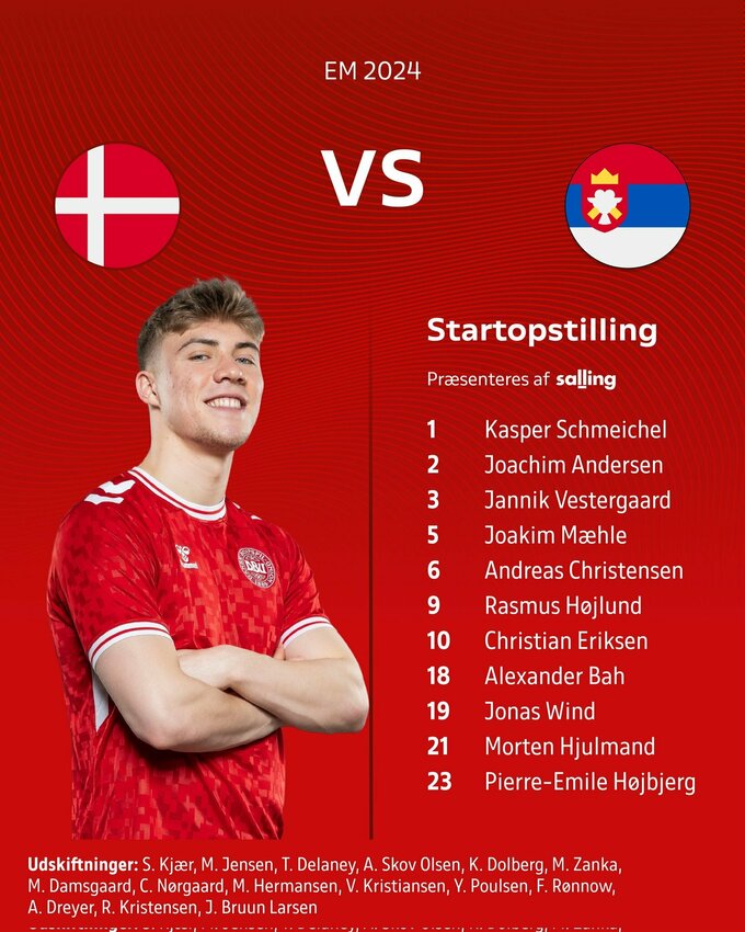 25 червня о 22:00 у німецькому Мюнхені відбудеться матч 3-го туру групи C Євро-2024 між збірними Данії та Сербії.