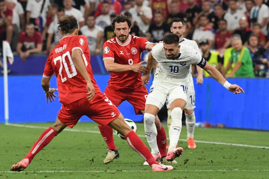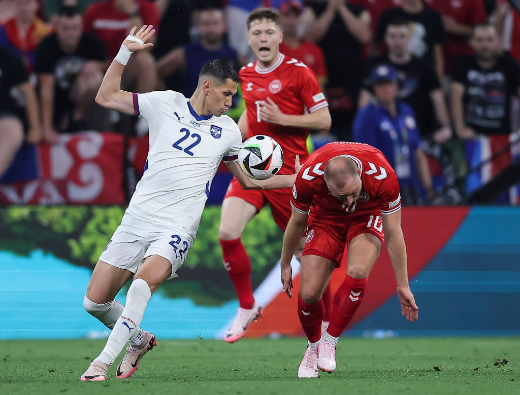 У поєдинку 3-го туру чемпіонату Європи у Мюнхені зустрілися збірні Данії та Сербії. Для виходу в плей-оф орлам потрібна була виключно перемога, тоді як данців влаштовувала нічия. У десяти попередніх матчах на великих турнірах данці здобули лише одну перемогу, тож червоно-білі були сповнені рішучості змінити цю статистику.