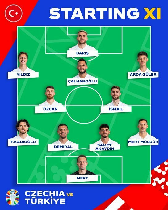 У середу, 26-го червня, відбудеться поєдинок 3-го туру групового етапу чемпіонату Європи-2024 у рамках групи F, у якому змагатимуться Чехія і Туреччина. Матч пройде в Гамбурзі (Німеччина), на полі стадіону «Фолькспаркштадіон», початок о 22:00.