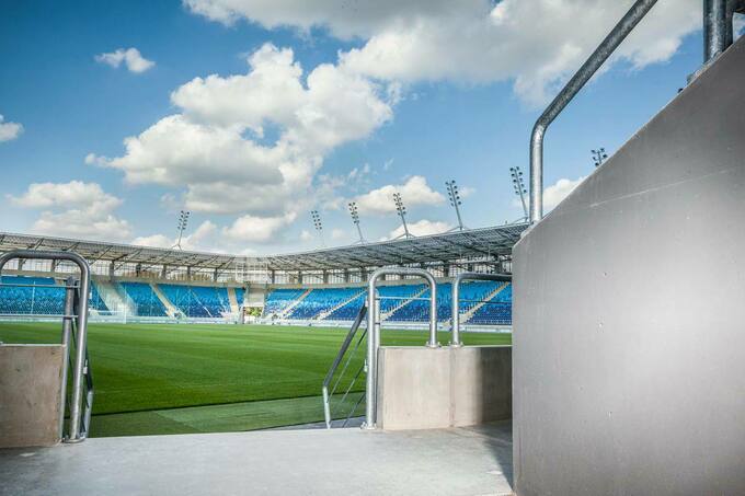 Стадіон відповідає умовам УЄФА для проведення міжнародних матчів та має вміщує 15,500 глядачів. Будівництво стадіону розпочалось у 2012 році, а у 2014 році арена була відкрита. Він є домашньою ареною для місцевого футбольного клубу «Мотор».