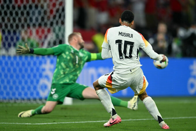 Власне, на це всі присутні на трибунах і очікували – потрібно було просто визначитись із часом, коли Німеччина таки дотисне своїх суперників, після чого на полі розпочався якийсь хаос. Тільки-но Данія виходить до атаки, як їй одразу летять за спини м’ячі під контратаки німців, і ті в підсумку забивають заключний гол зусиллями Мусіали.