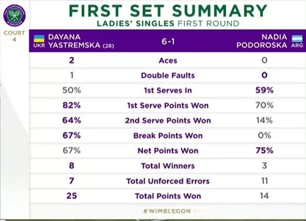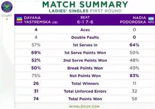 Ястремська розібралася з Подороскою в першому колі Вімблдону