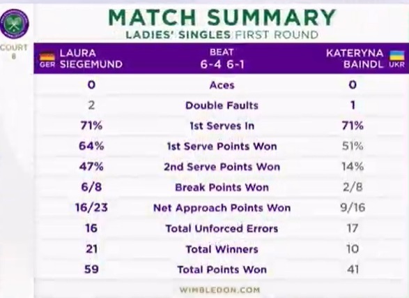 Катерина вшосте зіграла в основі Вімблдонського турніру і знову програла. Це єдиний турнір Grand Slam, на якому у неї немає перемог в основній сітці.