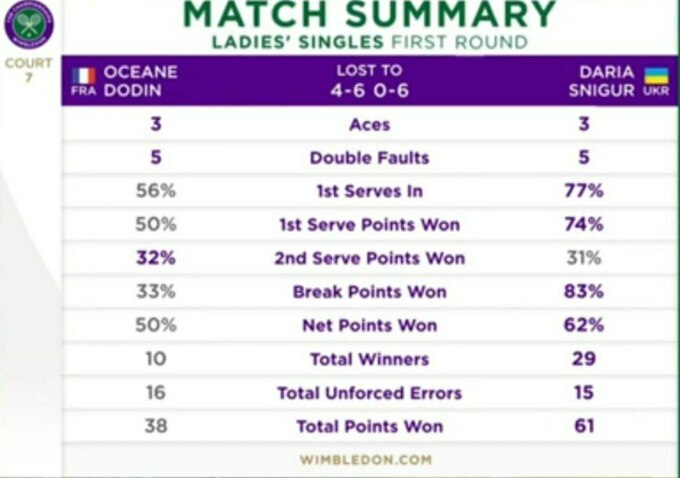 Осеан Доден (Франція) – Дар'я Снігур (Україна) [Q] – 4:6, 0:6