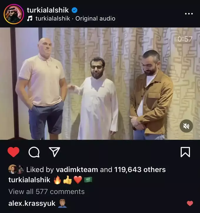 Нещодавно голова Генерального управління Саудівської Аравії з питань розваг Туркі Аль-Шейх та ексчемпіон світу за версією WBC Тайсон Ф'юрі звернулися до українського боксера Олександра Усика.