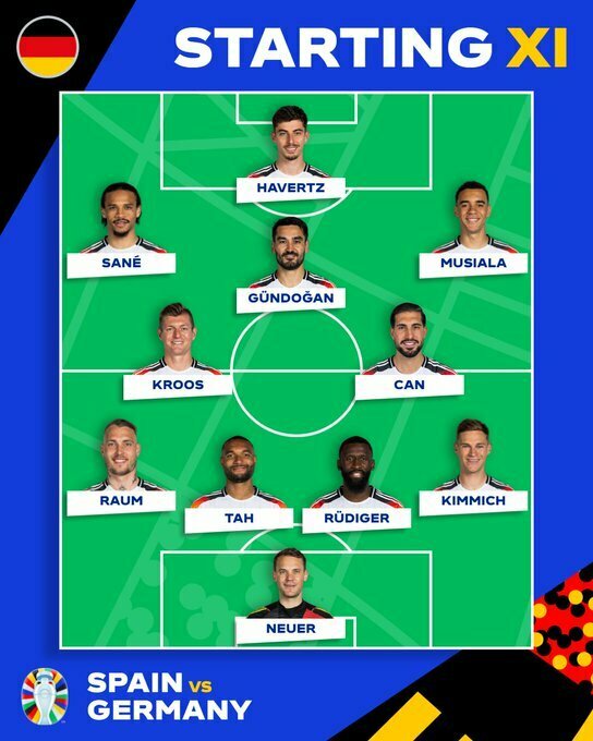 Німеччина: Ноєр – Раум (Міттельштедт, 57), Та (Мюллер, 80), Рюдігер, Кімміх – Кроос, Джан (Андріх, 46) – Мусіала, Гюндоган (Фюллькруг,57), Сане (Вірц, 46) – Гаверц (Антон, 91).