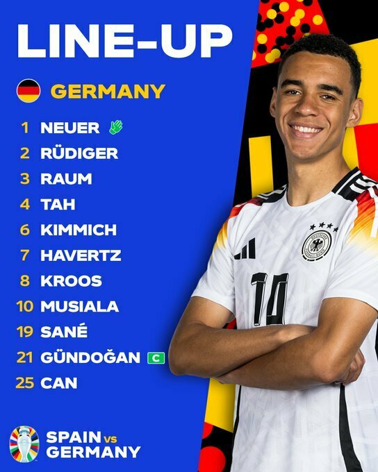 У п'ятницю, 5-го липня, відбудеться поєдинок чвертьфінального поєдинку чемпіонату Європи-2024, у якому змагатимуться Іспанія та Німеччина. Матч відбудеться у Штутгарті (Німеччина), на полі стадіону «Мерседес-Бенц-Арена», початок о 19:00.