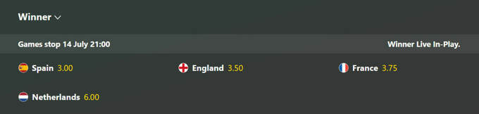 Протягом усього Євро та перед його стартом головним претендентом на трофей була Англія. Букмекери вперше змінили фаворита.
