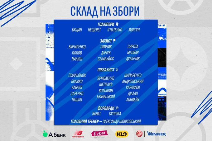 Динамівці Максим Брагару, Микола Михайленко та Валентин Рубчинський у період збору будуть задіяні в Олімпійській збірній України, а В'ячеслав Суркіс, Тарас Михавко, Назар Балаба, Олексій Гусєв, Андрій Маткевич та Матвій Пономаренко – в юнацькій збірній України U19.
