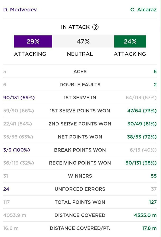 Це була 7-ма зустріч суперників. Алькарас виграв 5-й очний поєдинок.