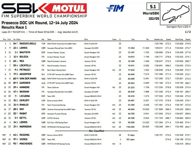 Турецький райдер зробив хет-трик – переміг після старту з поулу та встановив найкраще коло гонки. Таким чином, Топрак продовжив свою переможну серію до п'яти виграних перегонів поспіль.