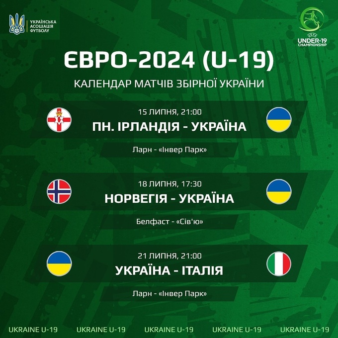 15 липня о 21:00 збірна України U-19 стартує на Євро-2024 U-19 матчем проти господарів турніру – команди Північної Ірландії U-19.