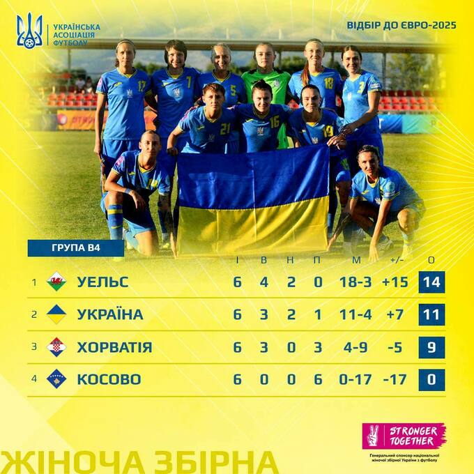 Жіноча збірна України після перемоги над Хорватією (2:0) фінішувала на другому місці у групі відбору до Євро-2025.